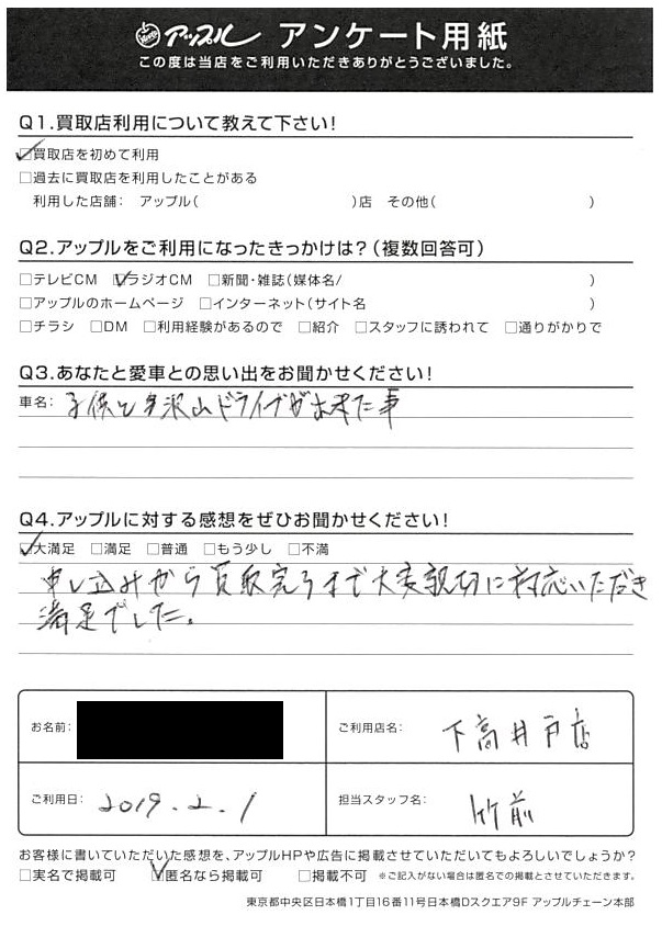 申し込みから買取完了まで大変親切に対応いただき満足でした。