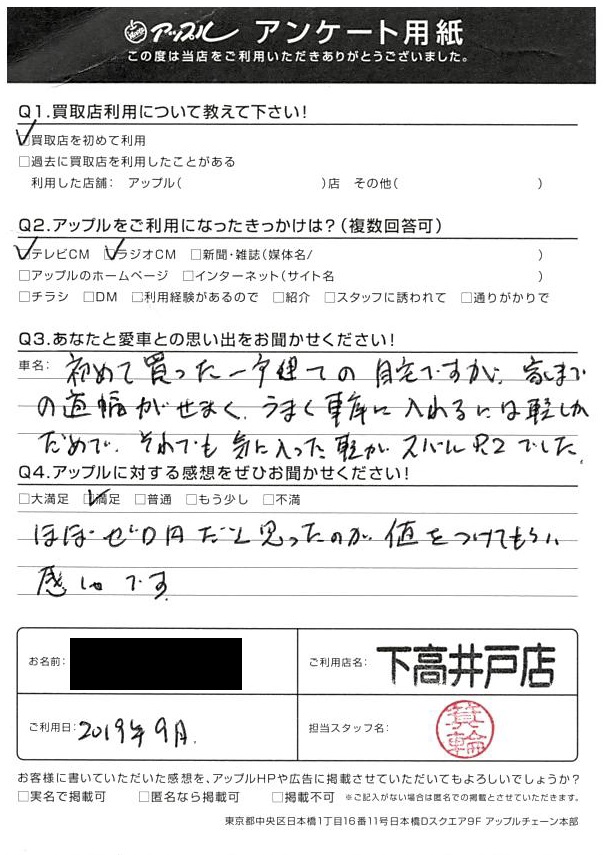 東京都渋谷区 ご利用日:2019/9 I様 車名:スバル R2