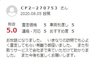 お世話になりました。いきなりの訪問でも心よく査定してもらい有難う御座いました。