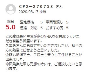この度は暑い中我が家のN-BOXを買取っていただき有難う御座います。
