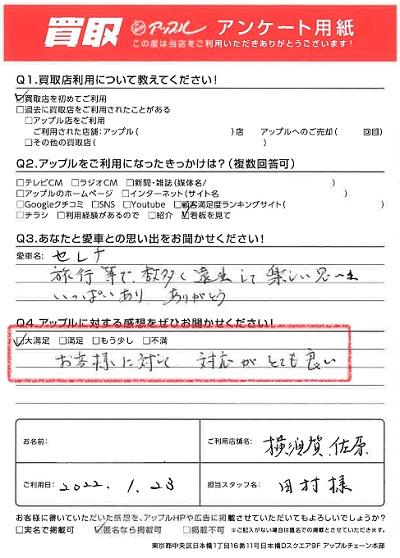 お車のご相談・ 査定だけでもOK! カンタン 入力 30秒 アップルがブランド買取始めました! お電話でも受付中! 受付時間9:30 ~ 18:30 046-833-8881 お車のご相談・ 査定だけでもOK! カンタン 入力 30秒 アップルがブランド買取始めました! お電話でも受付中! 受付時間9:30 ~ 18:30 046-833-8881 アップルがブランド買取始めました! お電話でも受付中! 受付時間9:30 ~ 18:30 046-833-8881 店舗情報 在庫車 スタッフ紹介 ブログ お客様の声 キャンペーン お得 無料査定 click お客様の声 ご記入日: 2022/01/23 I様 車名:日産 セレナ 満足度★★★★★お客様に対して、対応がとても良い。 前へ 次へ お客様の声一覧を見る