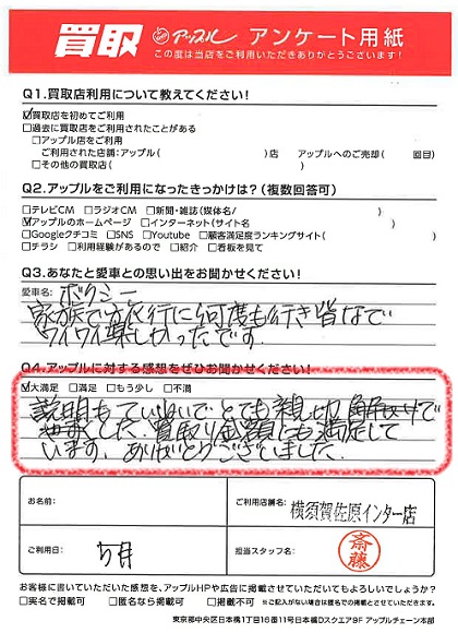お車のご相談・ 査定だけでもOK! カンタン 入力 30秒 アップルがブランド買取始めました! お電話でも受付中! 受付時間9:30 ~ 18:30 046-833-8881 お車のご相談・ 査定だけでもOK! カンタン 入力 30秒 アップルがブランド買取始めました! お電話でも受付中! 受付時間9:30 ~ 18:30 046-833-8881 アップルがブランド買取始めました! お電話でも受付中! 受付時間9:30 ~ 18:30 046-833-8881 店舗情報 在庫車 スタッフ紹介 ブログ お客様の声 キャンペーン お得 無料査定 click お客様の声 ご記入日: 2023/05/13 H様 車名:トヨタ ヴォクシー 満足度★★★★★説明もていねいで とても親切でした。買取り金額にも満足しています。ありがとうございました。 前へ 次へ お客様の声一覧を見る