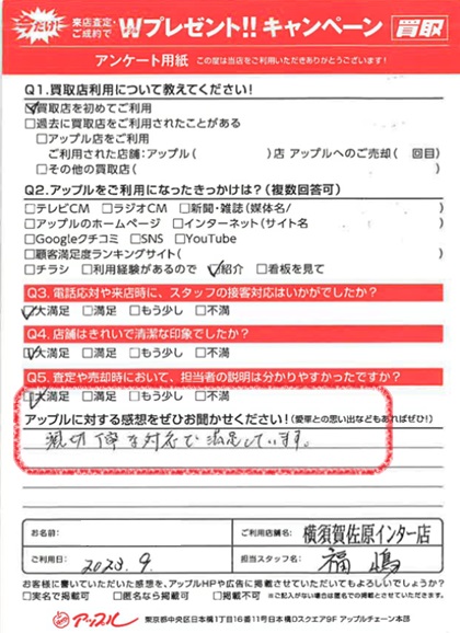 お車のご相談・ 査定だけでもOK! カンタン 入力 30秒 アップルがブランド買取始めました! お電話でも受付中! 受付時間9:30 ~ 18:30 046-833-8881 お車のご相談・ 査定だけでもOK! カンタン 入力 30秒 アップルがブランド買取始めました! お電話でも受付中! 受付時間9:30 ~ 18:30 046-833-8881 アップルがブランド買取始めました! お電話でも受付中! 受付時間9:30 ~ 18:30 046-833-8881 店舗情報 在庫車 スタッフ紹介 ブログ お客様の声 キャンペーン お得 無料査定 click お客様の声 ご記入日: 2023/09/09 H様 車名:フォルクスワーゲン ティグアン 満足度★★★★★親切丁寧な対応で満足しています。 前へ 次へ お客様の声一覧を見る