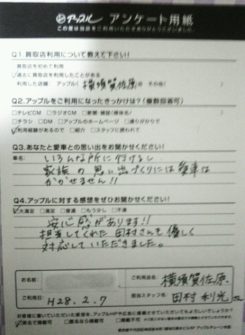 お車のご相談・ 査定だけでもOK! カンタン 入力 30秒 アップルがブランド買取始めました! お電話でも受付中! 受付時間9:30 ~ 18:30 046-833-8881 お車のご相談・ 査定だけでもOK! カンタン 入力 30秒 アップルがブランド買取始めました! お電話でも受付中! 受付時間9:30 ~ 18:30 046-833-8881 アップルがブランド買取始めました! お電話でも受付中! 受付時間9:30 ~ 18:30 046-833-8881 店舗情報 在庫車 スタッフ紹介 ブログ お客様の声 キャンペーン お得 無料査定 click お客様の声 ご記入日: 2016/02/07 A・Y様 ■ご利用日時■ H28年2月7日■車種■ ライトエースノア■担当者■ 田村【アップルに対する感想をぜひお書きください】満足度★★★★★安心感があります。担当してくれた田村さんも優しく対応していただきました。 前へ 次へ お客様の声一覧を見る