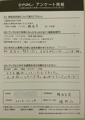 お車のご相談・ 査定だけでもOK! カンタン 入力 30秒 アップルがブランド買取始めました! お電話でも受付中! 受付時間9:30 ~ 18:30 046-833-8881 お車のご相談・ 査定だけでもOK! カンタン 入力 30秒 アップルがブランド買取始めました! お電話でも受付中! 受付時間9:30 ~ 18:30 046-833-8881 アップルがブランド買取始めました! お電話でも受付中! 受付時間9:30 ~ 18:30 046-833-8881 店舗情報 在庫車 スタッフ紹介 ブログ お客様の声 キャンペーン お得 無料査定 click お客様の声 ご記入日: 2016/11/19 S・T様 ■ご利用日時■ H28年11月19日■車種■ プリウス■担当者■ 堀内【アップルに対する感想をぜひお書きください】満足度★★★★★とても親切にしていただきました。またお願いしたいです。ありがとうございました。 前へ 次へ お客様の声一覧を見る