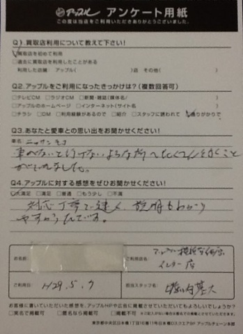 お車のご相談・ 査定だけでもOK! カンタン 入力 30秒 アップルがブランド買取始めました! お電話でも受付中! 受付時間9:30 ~ 18:30 046-833-8881 お車のご相談・ 査定だけでもOK! カンタン 入力 30秒 アップルがブランド買取始めました! お電話でも受付中! 受付時間9:30 ~ 18:30 046-833-8881 アップルがブランド買取始めました! お電話でも受付中! 受付時間9:30 ~ 18:30 046-833-8881 店舗情報 在庫車 スタッフ紹介 ブログ お客様の声 キャンペーン お得 無料査定 click お客様の声 ご記入日: 2017/05/07 A・H様 ■ご利用日時■ H 29 年 5 月 7 日■車種■ モコ■担当者■ 堀内基大《アップルに対する感想をぜひお書きください》満足度★★★★★対応丁寧で速く、説明もわかりやすかったです。 前へ 次へ お客様の声一覧を見る