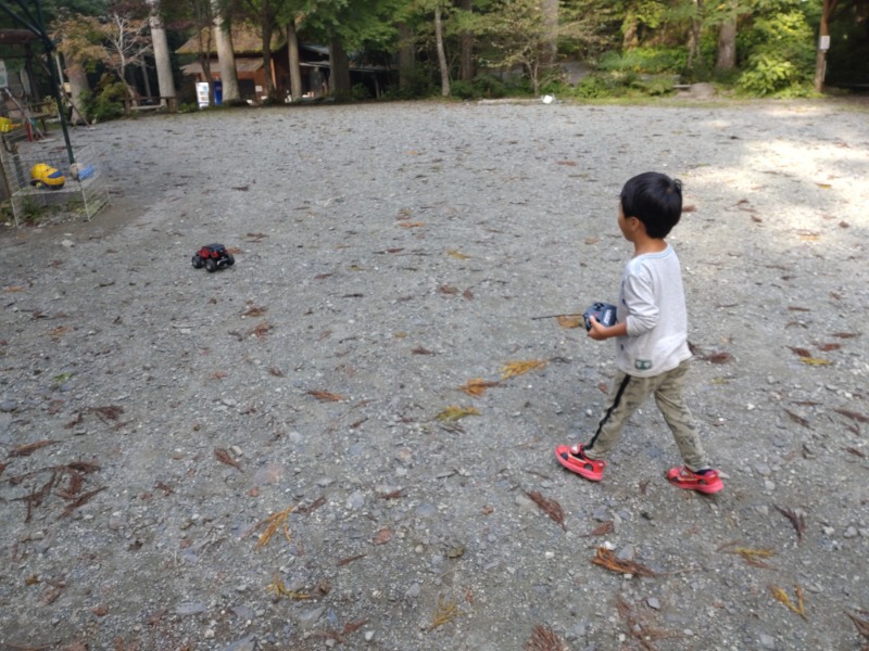 トカゲを初め虫を捕まえたり、キャンプ場にある遊具で遊んだり、この日の為に内緒で購入していたラジコンで遊んだりと