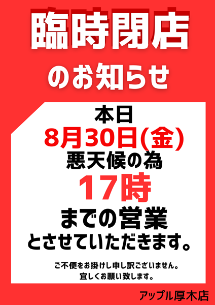お車のご相談・ 査定だけでもOK! カンタン 入力 30秒 アップルがブランド買取始めました! お電話でも受付中! 受付時間10:00 ~ 19:00 046-246-2828 お車のご相談・ 査定だけでもOK! カンタン 入力 30秒 アップルがブランド買取始めました! お電話でも受付中! 受付時間10:00 ~ 19:00 046-246-2828 アップルがブランド買取始めました! お電話でも受付中! 受付時間10:00 ~ 19:00 046-246-2828 店舗情報 在庫車 スタッフ紹介 ブログ お客様の声 キャンペーン 無料査定 click [ つぶやき ] 2024/08/30 (金) 15:50 本日17時迄の営業となります! 皆様こんにちは!昨日からの大雨で自宅周辺、職場周辺等大丈夫でしたでしょうか?あちこちでの冠水、氾濫、土砂崩れ等まだまだ安心できないと思いますので早め早めの行動でどうかお気を付けください。本日アップル厚木店悪天候の為17時までの営業とさせていただきます。ご迷惑お掛けしますが宜しくお願い致します。 2024-08-30 15:50:45 新しい記事へ 古い記事へ 最新記事 ☆故郷パートⅣ☆フレンチレストラン猿ヶ島へ◆お土産頂きました◆竹取物語 店舗情報に戻る 月別アーカイブ 2026年04月(2)2026年03月(11)2026年02月(18)2026年01月(18)2025年12月(10)2025年11月(9)2025年10月(12)2025年09月(10)2025年08月(10)2025年07月(5)2025年06月(5)2025年05月(11)2025年04月(12)2025年03月(15)2025年02月(13)2025年01月(16)2024年12月(7)2024年11月(8)2024年10月(7)2024年09月(9)2024年08月(6)2024年07月(11)2024年06月(9)2024年05月(7)2024年04月(15)2024年03月(10)2024年02月(7)2024年01月(8)2023年12月(3)2023年11月(7)2023年10月(8)2023年09月(9)2023年08月(9)2023年07月(11)2023年06月(3)2023年05月(7)2023年04月(4)2023年03月(7)2023年02月(5)2023年01月(14)2022年12月(6)2022年11月(7)2022年10月(11)2022年09月(9)2022年08月(10)2022年07月(16)2022年06月(15)2022年05月(11)2022年04月(8)2022年03月(7)2022年02月(5)2022年01月(9)2021年12月(9)2021年11月(10)2021年10月(11)2021年09月(9)2021年08月(10)2021年07月(10)2021年06月(10)2021年05月(9)2021年04月(11)2021年03月(5)2021年02月(7)2021年01月(4)2020年12月(5)2020年11月(6)2020年10月(6)2020年09月(6)2020年08月(9)2020年07月(6)2020年06月(7)2020年05月(6)2020年04月(5)2020年03月(7)2020年02月(7)2020年01月(10)2019年12月(7)2019年11月(8)2019年10月(8)2019年09月(9)2019年08月(8)2019年07月(12)2019年06月(8)2019年05月(8)2019年04月(8)2019年03月(7)2019年02月(8)2018年12月(11)2018年11月(10)2018年10月(10)2018年09月(16)2018年08月(14)2018年07月(16)2018年06月(15)2018年05月(14)2018年04月(12)2018年03月(10)2018年02月(10)2018年01月(11)2017年12月(5)2017年11月(8)2017年10月(6)2017年09月(8)2017年08月(25)2017年07月(13)2017年06月(13)2017年05月(10)2017年04月(8)2017年03月(6)2017年02月(8)2017年01月(8)2016年12月(7)2016年11月(10)2016年10月(12)2016年09月(12)2016年08月(24)2016年07月(4)2016年06月(6)2016年05月(3)2016年04月(7)2016年03月(7)2016年02月(5)2016年01月(7)2015年12月(6)2015年11月(5)2015年10月(3)2015年09月(8)2015年08月(9)2015年07月(9)2015年06月(8)2015年05月(8)2015年04月(11)2015年03月(8)2015年02月(8)2015年01月(7)2014年12月(7)2014年11月(8)2014年10月(11)2014年09月(11)2014年08月(11)2014年07月(9)2014年06月(13)2014年05月(12)2014年04月(7)2014年02月(1)2014年01月(2)2013年12月(1)2013年11月(1)2013年10月(1)2013年08月(2)
