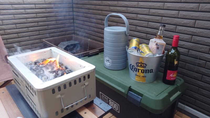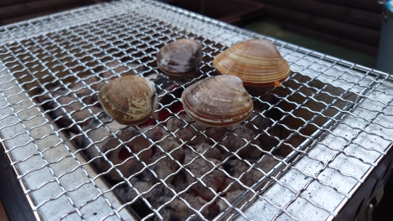 帰宅時に砂抜きをしていたので帰ったらすぐにシャワーを浴びてからバルコニーに炭とお酒の準備をして