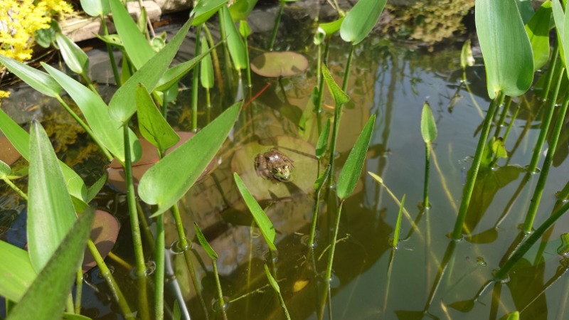 横にある池で蓮の上にカエルが乗っていたので思わず写真を撮ってしましました(^_^;)
