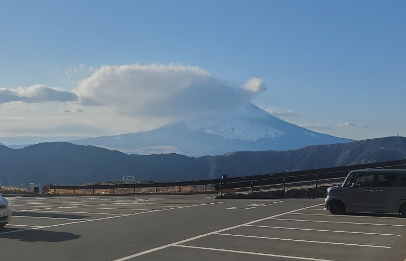 帰りに駐車場から見えた富士山は少し雲がかかっていましたが、