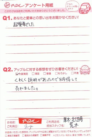 お車のご相談・ 査定だけでもOK! カンタン 入力 30秒 アップルがブランド買取始めました! お電話でも受付中! 受付時間10:00 ~ 19:00 046-246-2828 お車のご相談・ 査定だけでもOK! カンタン 入力 30秒 アップルがブランド買取始めました! お電話でも受付中! 受付時間10:00 ~ 19:00 046-246-2828 アップルがブランド買取始めました! お電話でも受付中! 受付時間10:00 ~ 19:00 046-246-2828 店舗情報 在庫車 スタッフ紹介 ブログ お客様の声 キャンペーン 無料査定 click お客様の声 ご記入日: 2013/09/05 T様 くわしい説明があったので納得して売れました。 前へ 次へ お客様の声一覧を見る