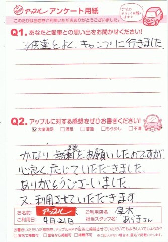 お車のご相談・ 査定だけでもOK! カンタン 入力 30秒 アップルがブランド買取始めました! お電話でも受付中! 受付時間10:00 ~ 19:00 046-246-2828 お車のご相談・ 査定だけでもOK! カンタン 入力 30秒 アップルがブランド買取始めました! お電話でも受付中! 受付時間10:00 ~ 19:00 046-246-2828 アップルがブランド買取始めました! お電話でも受付中! 受付時間10:00 ~ 19:00 046-246-2828 店舗情報 在庫車 スタッフ紹介 ブログ お客様の声 キャンペーン 無料査定 click お客様の声 ご記入日: 2013/09/21 Y様 かなり無理をお願いしたのですが心良く応じていただきました。ありがとうございました。又、利用させていただきます。 前へ 次へ お客様の声一覧を見る