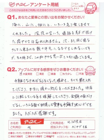 お車のご相談・ 査定だけでもOK! カンタン 入力 30秒 アップルがブランド買取始めました! お電話でも受付中! 受付時間10:00 ~ 19:00 046-246-2828 お車のご相談・ 査定だけでもOK! カンタン 入力 30秒 アップルがブランド買取始めました! お電話でも受付中! 受付時間10:00 ~ 19:00 046-246-2828 アップルがブランド買取始めました! お電話でも受付中! 受付時間10:00 ~ 19:00 046-246-2828 店舗情報 在庫車 スタッフ紹介 ブログ お客様の声 キャンペーン 無料査定 click お客様の声 ご記入日: 2013/10/01 M様 手離さなければならなくなった理由も、すべて聞き入れてくださり、本当に暖かい対応をしてくださり、金額の面だけでなく、いろんな面で納得して愛車を手離す決心ができました。ただただ感謝です。 前へ 次へ お客様の声一覧を見る