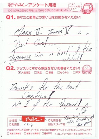 お車のご相談・ 査定だけでもOK! カンタン 入力 30秒 アップルがブランド買取始めました! お電話でも受付中! 受付時間10:00 ~ 19:00 046-246-2828 お車のご相談・ 査定だけでもOK! カンタン 入力 30秒 アップルがブランド買取始めました! お電話でも受付中! 受付時間10:00 ~ 19:00 046-246-2828 アップルがブランド買取始めました! お電話でも受付中! 受付時間10:00 ~ 19:00 046-246-2828 店舗情報 在庫車 スタッフ紹介 ブログ お客様の声 キャンペーン 無料査定 click お客様の声 ご記入日: 2013/10/06 S様 Thak's for the best Service!No1 of the Japan! 前へ 次へ お客様の声一覧を見る