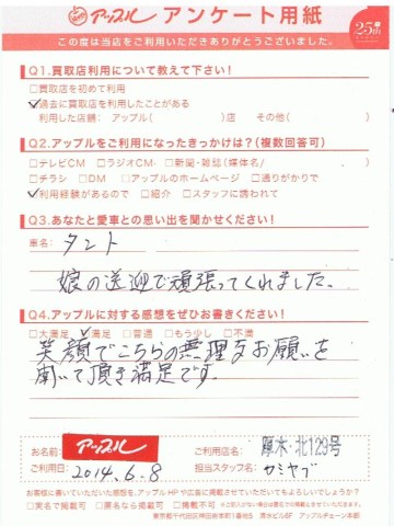 お車のご相談・ 査定だけでもOK! カンタン 入力 30秒 アップルがブランド買取始めました! お電話でも受付中! 受付時間10:00 ~ 19:00 046-246-2828 お車のご相談・ 査定だけでもOK! カンタン 入力 30秒 アップルがブランド買取始めました! お電話でも受付中! 受付時間10:00 ~ 19:00 046-246-2828 アップルがブランド買取始めました! お電話でも受付中! 受付時間10:00 ~ 19:00 046-246-2828 店舗情報 在庫車 スタッフ紹介 ブログ お客様の声 キャンペーン 無料査定 click お客様の声 ご記入日: 2014/06/08 H様 笑顔でこちらの無理なお願いを聞いて頂き満足です。 前へ 次へ お客様の声一覧を見る