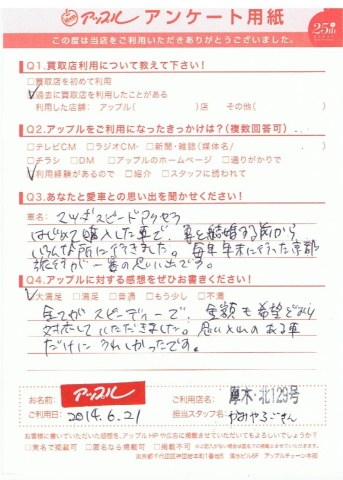 お車のご相談・ 査定だけでもOK! カンタン 入力 30秒 アップルがブランド買取始めました! お電話でも受付中! 受付時間10:00 ~ 19:00 046-246-2828 お車のご相談・ 査定だけでもOK! カンタン 入力 30秒 アップルがブランド買取始めました! お電話でも受付中! 受付時間10:00 ~ 19:00 046-246-2828 アップルがブランド買取始めました! お電話でも受付中! 受付時間10:00 ~ 19:00 046-246-2828 店舗情報 在庫車 スタッフ紹介 ブログ お客様の声 キャンペーン 無料査定 click お客様の声 ご記入日: 2014/06/21 Y様 全てがスピーディーで、金額も希望どおり対応していただきました。思い入れのある車だけにうれしかったです。 前へ 次へ お客様の声一覧を見る
