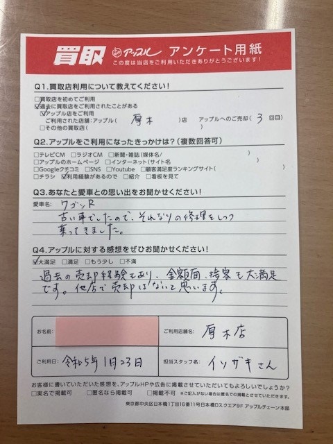 愛甲郡愛川町 K様  車名:スズキ ワゴンR