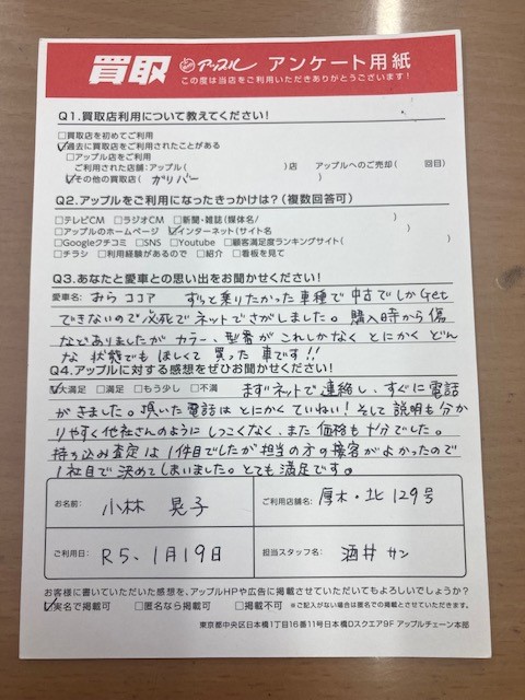 厚木市 小林様 車名:ダイハツ ミラココア