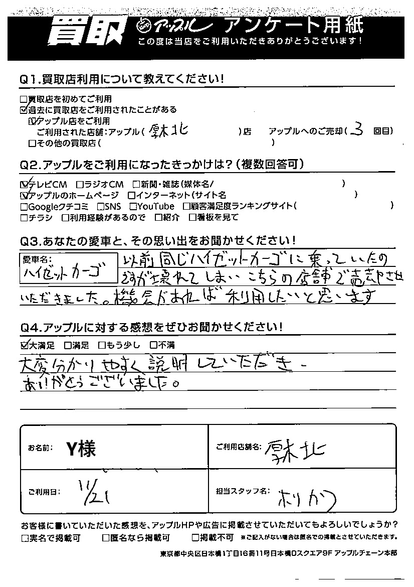 ご利用日:2024/11/21 Y 様
