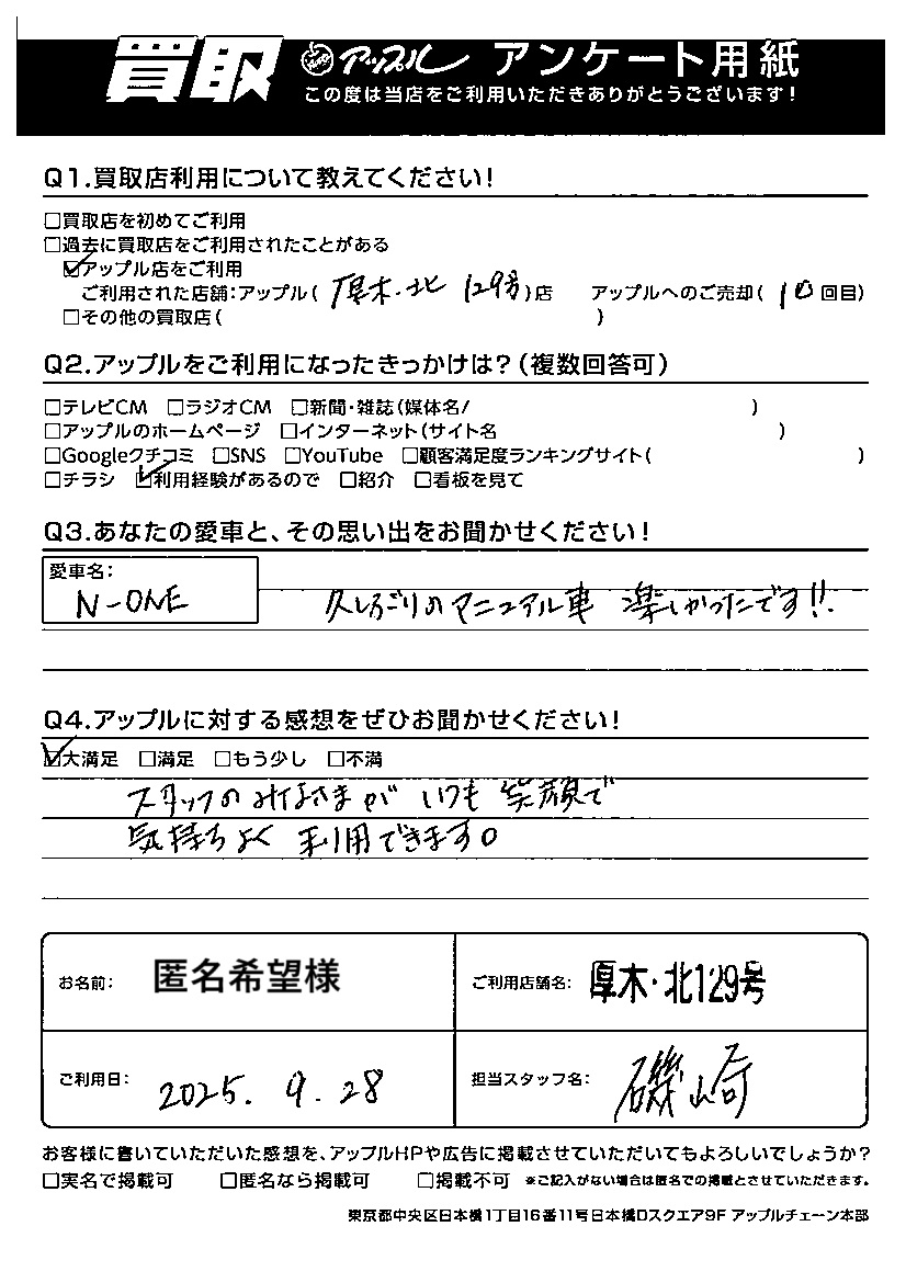 A.愛車名:N-ONE 久しぶりのマニュアル車、楽しかったです!!