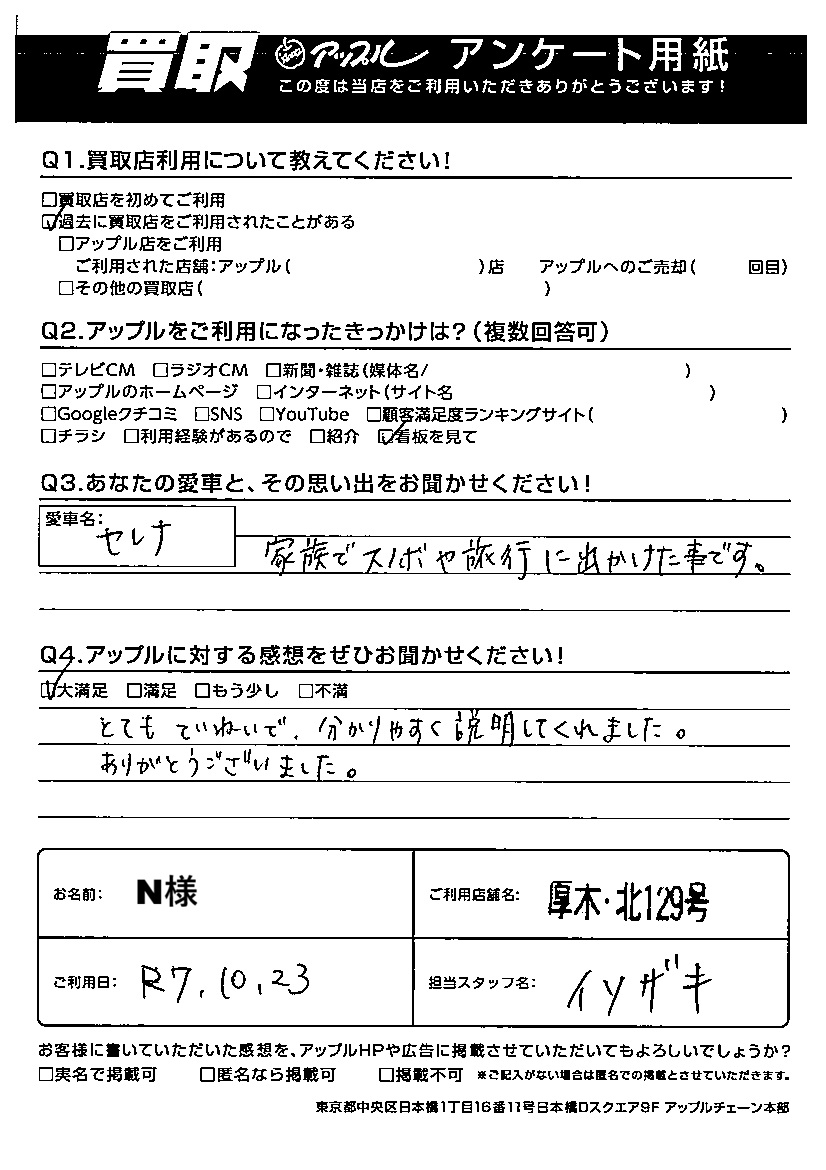 ご利用日:2025/10/23 N 様