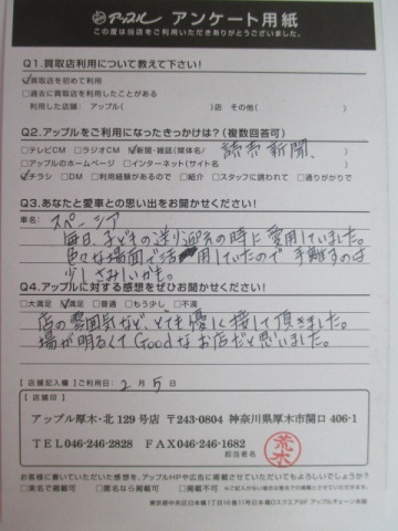 お車のご相談・ 査定だけでもOK! カンタン 入力 30秒 アップルがブランド買取始めました! お電話でも受付中! 受付時間10:00 ~ 19:00 046-246-2828 お車のご相談・ 査定だけでもOK! カンタン 入力 30秒 アップルがブランド買取始めました! お電話でも受付中! 受付時間10:00 ~ 19:00 046-246-2828 アップルがブランド買取始めました! お電話でも受付中! 受付時間10:00 ~ 19:00 046-246-2828 店舗情報 在庫車 スタッフ紹介 ブログ お客様の声 キャンペーン 無料査定 click お客様の声 ご記入日: 2017/02/05 M様 店の雰囲気などとても優しく接して頂きました。場が明るくてGoodなお店だと思いました。 前へ 次へ お客様の声一覧を見る