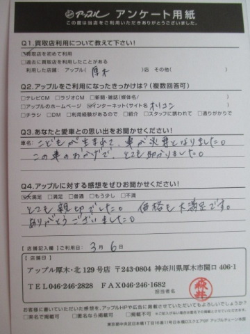 お車のご相談・ 査定だけでもOK! カンタン 入力 30秒 アップルがブランド買取始めました! お電話でも受付中! 受付時間10:00 ~ 19:00 046-246-2828 お車のご相談・ 査定だけでもOK! カンタン 入力 30秒 アップルがブランド買取始めました! お電話でも受付中! 受付時間10:00 ~ 19:00 046-246-2828 アップルがブランド買取始めました! お電話でも受付中! 受付時間10:00 ~ 19:00 046-246-2828 店舗情報 在庫車 スタッフ紹介 ブログ お客様の声 キャンペーン 無料査定 click お客様の声 ご記入日: 2017/03/06 F様 とても親切でした。価格も大満足です。ありがとうございました。 前へ 次へ お客様の声一覧を見る