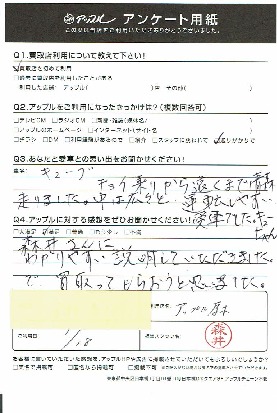お車のご相談・ 査定だけでもOK! カンタン 入力 30秒 アップルがブランド買取始めました! お電話でも受付中! 受付時間10:00 ~ 19:00 046-246-2828 お車のご相談・ 査定だけでもOK! カンタン 入力 30秒 アップルがブランド買取始めました! お電話でも受付中! 受付時間10:00 ~ 19:00 046-246-2828 アップルがブランド買取始めました! お電話でも受付中! 受付時間10:00 ~ 19:00 046-246-2828 店舗情報 在庫車 スタッフ紹介 ブログ お客様の声 キャンペーン 無料査定 click お客様の声 ご記入日: 2018/01/18 K様 森井さんにわかりやすい説明していただきました。で、買ってもらおうと思いました。 前へ 次へ お客様の声一覧を見る