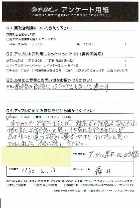 お車のご相談・ 査定だけでもOK! カンタン 入力 30秒 アップルがブランド買取始めました! お電話でも受付中! 受付時間10:00 ~ 19:00 046-246-2828 お車のご相談・ 査定だけでもOK! カンタン 入力 30秒 アップルがブランド買取始めました! お電話でも受付中! 受付時間10:00 ~ 19:00 046-246-2828 アップルがブランド買取始めました! お電話でも受付中! 受付時間10:00 ~ 19:00 046-246-2828 店舗情報 在庫車 スタッフ紹介 ブログ お客様の声 キャンペーン 無料査定 click お客様の声 ご記入日: 2018/02/03 I様 初めてで不安でしたが、対応がとても良く安心でした。他も当たった方が良いと思い他店にも行きましたがあまりにも違う対応に驚きやはりアップルと思いTELしました。本当に優しい方でした。 前へ 次へ お客様の声一覧を見る