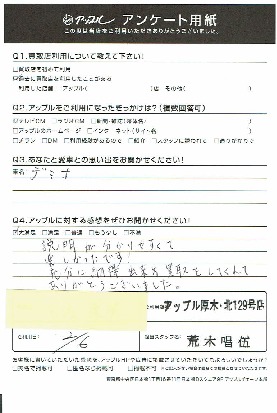 お車のご相談・ 査定だけでもOK! カンタン 入力 30秒 アップルがブランド買取始めました! お電話でも受付中! 受付時間10:00 ~ 19:00 046-246-2828 お車のご相談・ 査定だけでもOK! カンタン 入力 30秒 アップルがブランド買取始めました! お電話でも受付中! 受付時間10:00 ~ 19:00 046-246-2828 アップルがブランド買取始めました! お電話でも受付中! 受付時間10:00 ~ 19:00 046-246-2828 店舗情報 在庫車 スタッフ紹介 ブログ お客様の声 キャンペーン 無料査定 click お客様の声 ご記入日: 2018/02/06 A様 説明が分かりやすくて楽しかったです!十分に納得出来る買取をしてくれてありがとうございました。 前へ 次へ お客様の声一覧を見る