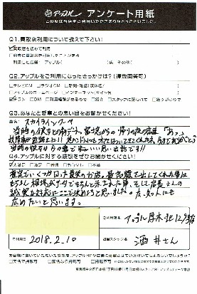 お車のご相談・ 査定だけでもOK! カンタン 入力 30秒 アップルがブランド買取始めました! お電話でも受付中! 受付時間10:00 ~ 19:00 046-246-2828 お車のご相談・ 査定だけでもOK! カンタン 入力 30秒 アップルがブランド買取始めました! お電話でも受付中! 受付時間10:00 ~ 19:00 046-246-2828 アップルがブランド買取始めました! お電話でも受付中! 受付時間10:00 ~ 19:00 046-246-2828 店舗情報 在庫車 スタッフ紹介 ブログ お客様の声 キャンペーン 無料査定 click お客様の声 ご記入日: 2018/02/10 S様 査定でいくつか回った最後のお店。最高額を出してくれた事はもちろん、相場がデータできちんと示された事、そして店長さんの誠実な対応にここで決めようと思いました。友、知人にも広めたいと思います。 前へ 次へ お客様の声一覧を見る