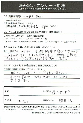 お車のご相談・ 査定だけでもOK! カンタン 入力 30秒 アップルがブランド買取始めました! お電話でも受付中! 受付時間10:00 ~ 19:00 046-246-2828 お車のご相談・ 査定だけでもOK! カンタン 入力 30秒 アップルがブランド買取始めました! お電話でも受付中! 受付時間10:00 ~ 19:00 046-246-2828 アップルがブランド買取始めました! お電話でも受付中! 受付時間10:00 ~ 19:00 046-246-2828 店舗情報 在庫車 スタッフ紹介 ブログ お客様の声 キャンペーン 無料査定 click お客様の声 ご記入日: 2018/02/25 W様 明るくハキハキと会話がすすみ、色々な面であきらめがつくことができました。 前へ 次へ お客様の声一覧を見る