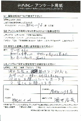お車のご相談・ 査定だけでもOK! カンタン 入力 30秒 アップルがブランド買取始めました! お電話でも受付中! 受付時間10:00 ~ 19:00 046-246-2828 お車のご相談・ 査定だけでもOK! カンタン 入力 30秒 アップルがブランド買取始めました! お電話でも受付中! 受付時間10:00 ~ 19:00 046-246-2828 アップルがブランド買取始めました! お電話でも受付中! 受付時間10:00 ~ 19:00 046-246-2828 店舗情報 在庫車 スタッフ紹介 ブログ お客様の声 キャンペーン 無料査定 click お客様の声 ご記入日: 2018/03/25 N様 酒井店長の親切なご対応と希望に近い額で納得しました。次回もお願いしたいと思います。又、宜しくお願いします。 前へ 次へ お客様の声一覧を見る