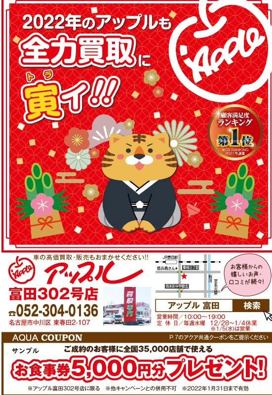 お車のご相談・ 査定だけでもOK! カンタン 入力 30秒 アップルがブランド買取始めました! お電話でも受付中! 受付時間AM10:00~PM7:00(毎週水曜日店休) 052-304-0136 お車のご相談・ 査定だけでもOK! カンタン 入力 30秒 アップルがブランド買取始めました! お電話でも受付中! 受付時間AM10:00~PM7:00(毎週水曜日店休) 052-304-0136 アップルがブランド買取始めました! お電話でも受付中! 受付時間AM10:00~PM7:00(毎週水曜日店休) 052-304-0136 店舗情報 在庫車 スタッフ紹介 ブログ お客様の声 キャンペーン 無料査定 click 最新記事一覧 月別アーカイブ 2026年04月(6)2026年03月(6)2026年02月(9)2026年01月(7)2025年12月(9)2025年11月(13)2025年10月(6)2025年09月(12)2025年08月(17)2025年07月(11)2025年06月(7)2025年05月(20)2025年04月(10)2025年03月(7)2025年02月(6)2025年01月(8)2024年12月(12)2024年11月(14)2024年10月(14)2024年09月(20)2024年08月(15)2024年07月(18)2024年06月(17)2024年05月(18)2024年04月(15)2024年03月(15)2024年02月(13)2024年01月(10)2023年12月(5)2023年11月(8)2023年10月(8)2023年09月(3)2023年08月(16)2023年07月(8)2023年06月(10)2023年05月(11)2023年04月(9)2023年03月(3)2023年02月(5)2023年01月(4)2022年12月(4)2022年11月(6)2022年10月(4)2022年09月(9)2022年08月(9)2022年07月(8)2022年06月(9)2022年05月(7)2022年04月(8)2022年03月(6)2022年02月(3)2022年01月(8)2021年12月(7)2021年11月(14)2021年10月(14)2021年09月(14)2021年08月(22)2021年07月(22)2021年06月(22)2021年05月(21)2021年04月(20)2021年03月(8)2021年02月(8)2021年01月(6)2020年12月(9)2020年11月(11)2020年10月(7)2020年09月(11)2020年08月(22)2020年07月(26)2020年06月(26)2020年05月(22)2020年04月(25)2020年03月(25)2020年02月(25)2020年01月(22)2019年12月(14)2019年11月(12)2019年10月(11)2019年09月(4)2019年08月(12)2019年07月(9)2019年06月(20)2019年05月(22)2019年04月(7)2019年03月(5)2019年02月(3)2019年01月(1)2018年12月(5)2018年11月(4)2018年10月(3)2018年09月(9)2018年08月(7)2018年07月(8)2018年06月(7)2018年05月(9)2018年04月(7)2018年03月(4)2018年02月(5)2018年01月(13)2017年12月(5)2017年11月(10)2017年10月(7)2017年09月(5)2017年08月(4)2017年07月(4)2017年06月(2)2017年05月(5)2017年04月(5)2017年03月(1)2017年02月(2)2017年01月(7)2016年12月(2)2016年11月(2)2016年10月(4)2016年09月(3)2016年08月(8)2016年07月(4)2016年06月(3)2016年05月(4)2016年04月(3)2016年03月(2)2016年02月(1)2016年01月(6)2015年12月(4)2015年11月(1)2015年10月(3)2015年09月(4)2015年08月(1)2015年06月(2)2015年05月(2)2015年04月(4)2015年03月(1)2015年02月(4)2015年01月(3)2014年12月(3)2014年11月(4)2014年10月(3)2014年09月(6)2014年08月(8)2014年07月(8)2014年06月(10)2014年05月(7)2014年04月(4)2014年03月(1)2014年02月(1)2014年01月(2)2013年12月(3)2013年10月(1)2013年09月(1) 501-510/1306件中 [ つぶやき ] 2022/01/11(火) 11:08 ☆アニメブログ☆ みなさま、こんにちは!!アドバイザーの藤本です!!本日のブログは、、、☆アニメブログ☆です!!本日ご紹介するアニメは、、、(画像はインターネットより参照)~あらすじ~三門市に突如として開いた異世界への門(ゲート)。のちに「近界民(ネイバー)」と呼ばれる異次元からの侵略者がゲート付近の地域を蹂… [ つぶやき ] 2022/01/10(月) 10:07 めでたい!! みなさま、こんにちは!!アドバイザーの藤本です!!本日のブログは、、、「めでたい」です!!本日は成人の日ですね!!新成人になられたみなさまおめでとうございます!めでたいですね!!こういうおめでたい日によく食べられるのが鯛ですよね!!実家愛媛の名物に鯛めしという料理があるんです!!鯛をご飯と一… [ つぶやき ] 2022/01/08(土) 10:45 猪骨ラーメン みなさま、こんにちは!アドバイザーの藤本です!!本日のブログは、、、「猪骨ラーメン」です!!みなさま、猪骨ラーメンって聞いた事ありますか!?私、聞いたことなかったのですがたまたま見つけて食べてみました!!なんでも、テレビでも取り上げられたことがあるみたいです。見た目は普通の味噌ラーメンです。… [ つぶやき ] 2022/01/07(金) 10:35 七草粥 みなさま、こんにちは!!アドバイザーの藤本です!!本日のブログは、、、「七草粥」です!!「七草粥」とは、1月7日の人日(じんじつ)の節句の行事食。その日の朝に「春の七草」が入ったおかゆを食べると、1年間を無病息災で過ごせるとされています。春の七草は、歌でおなじみ「せり・なずな・ごぎょう・はこ… [ つぶやき ] 2022/01/06(木) 10:24 情報誌AQUA発刊情報 みなさま、こんにちは!!アドバイザーの藤本です。本日のブログは、、、情報誌AQUAの発刊情報です!!クーポンをご持参いただき当店へお車をご売却頂いた場合お食事券5000円分をプレゼントさせて頂きます!!今年も皆様に満足いただけるようスタッフ一同精一杯接客させて頂きます。また、現在キャンペーン… [ 未分類 ] 2022/01/05(水) 11:14 明けましておめでとうございます☆ 新年明けましておめでとうございます☆本年もアップル富田302号店を宜しくお願い申し上げます。(^-^)本年も地域最古参の歴史あるお店として、皆様に愛されるお店作りと高価買い取りを目指して営業させて頂きます!\(^_^)/2022年もアップル富田302号店にご期待下さいませ(^^)早速ですが本… [ つぶやき ] 2021/12/27(月) 10:15 今年最後の営業日 皆様、おはようございます!アドバイザーの伊達で