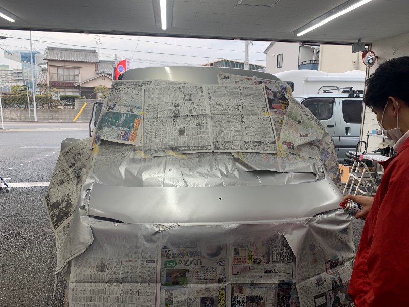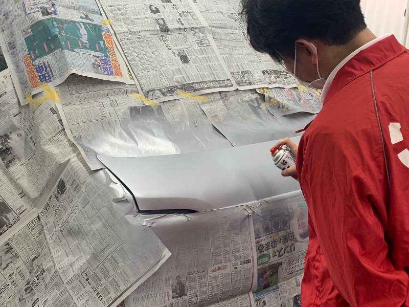 塗り重ね乾かした後、シルバーの塗装を吹いていきます!