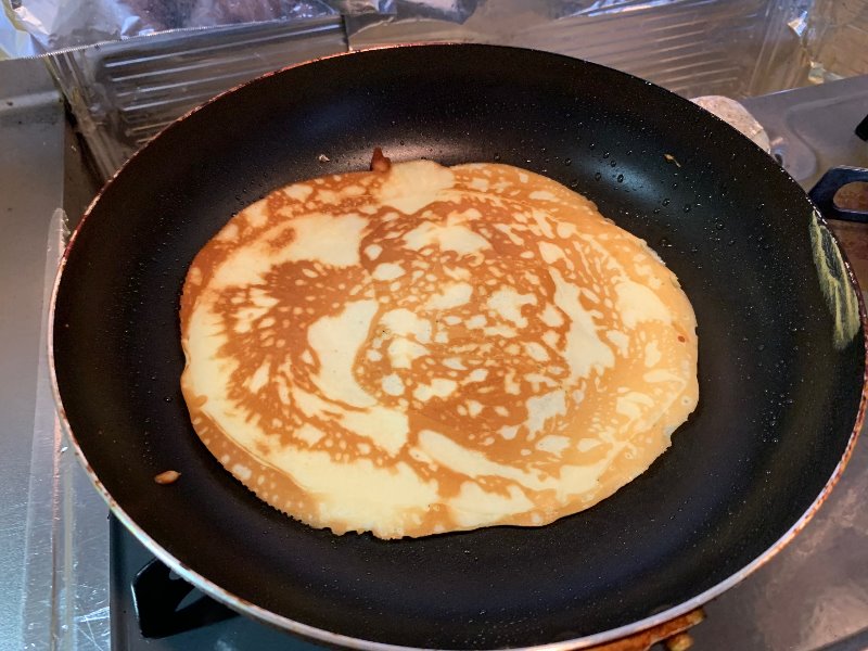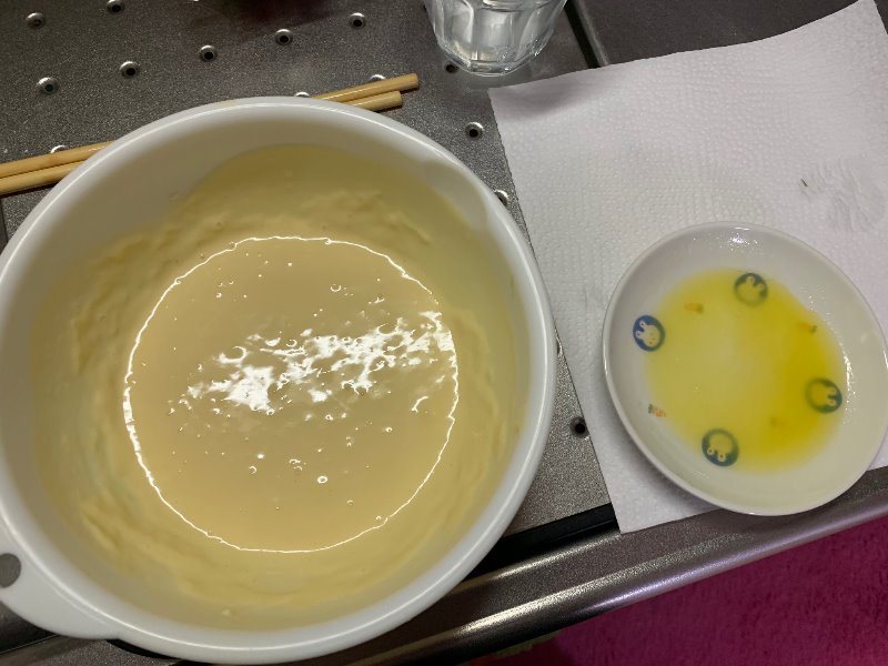 そして熱したフライパンに生地を!