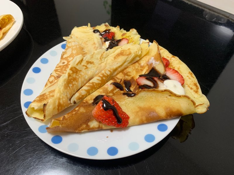 クレープと言えばチョコバナナのイメージが個人的に強いですが、イチゴがマイブームという事もあり今回はイチゴを使って作ってみました(^^)/