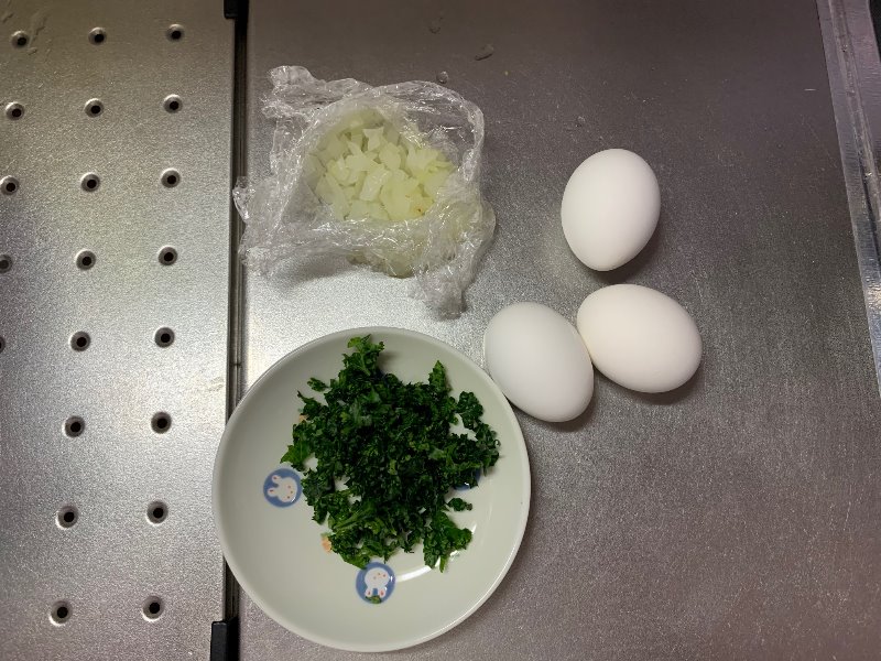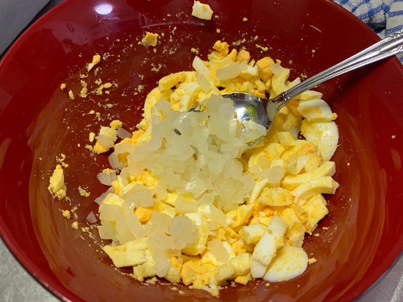 ゆで卵とみじん切りにした玉ねぎ(レンジで温め辛味を飛ばしたものです)を混ぜ合わせ、