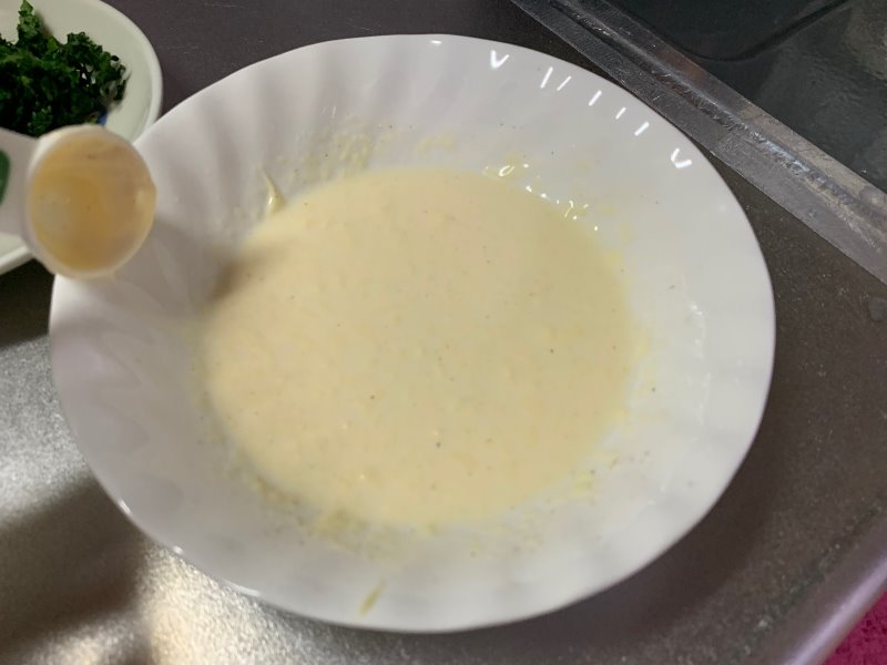 別の容器でお酢や塩・砂糖・マヨネーズを混ぜた後