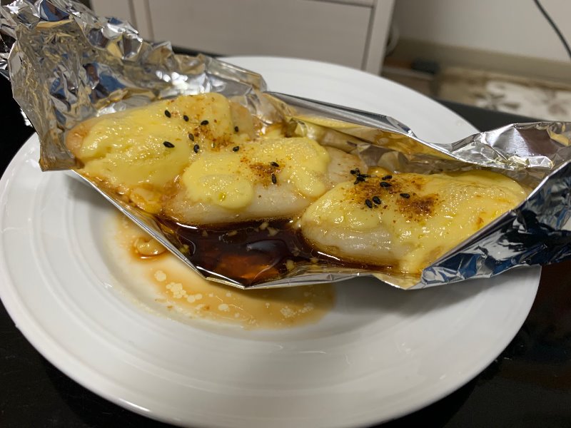 笹かまの上にマヨネーズと醤油をかけてオーブンで焼きその後一味唐辛子をかけて食べるというものです(*'ω'*)