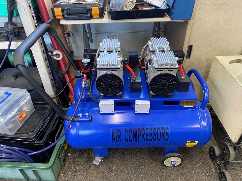 こちら、エアーコンプレッサーと言って空気を溜めて