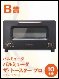 B賞 バルミューダ ザ・トースタープロ(カラー:ブラック) 10名様