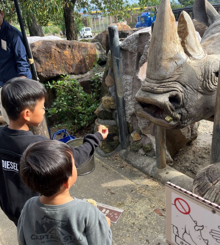 サファリゾーンを歩きサイとキリンとゾウに餌やり体験をしました!