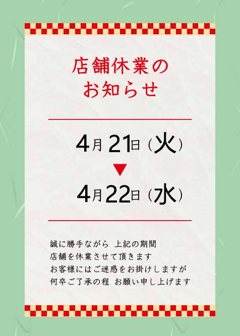 お車のご相談・ 査定だけでもOK! カンタン 入力 30秒 アップルがブランド買取始めました! お電話でも受付中! 受付時間AM10:00~PM7:00(毎週水曜日店休) 052-304-0136 お車のご相談・ 査定だけでもOK! カンタン 入力 30秒 アップルがブランド買取始めました! お電話でも受付中! 受付時間AM10:00~PM7:00(毎週水曜日店休) 052-304-0136 アップルがブランド買取始めました! お電話でも受付中! 受付時間AM10:00~PM7:00(毎週水曜日店休) 052-304-0136 店舗情報 在庫車 スタッフ紹介 ブログ お客様の声 キャンペーン 無料査定 click [ 未分類 ] 2026/04/11 (土) 10:28 ☆臨時休業のお知らせ☆ 皆様こんにちは!アップル富田店の岩田です(=゚ω゚)ノ昨日は雨が降ってて生憎の天気でしたが、今日は綺麗な青空ですね!風は強いですが、当店は風にも負けずで元気に営業しております!皆様のご来店をお待ちしております!!・・・さて、今回は臨時休業のお知らせです!誠に勝手ながら、4/21㈫・4/22㈬は社員研修の為、店舗を休業させていただきます。なお、4/23㈭はAM10時より通常営業いたします。ご来店を予定していた皆様にはご不便・ご迷惑をお掛けいたしますが、よろしくお願いいたします。以上、岩田でした(=゚ω゚)ノ 2026-04-11 10:28:15 新しい記事へ 古い記事へ 最新記事 ☆臨時休業のお知らせ☆ゴンチャ☆納車ブログ☆☆納車ブログ☆☆蒙古タンメン☆ 店舗情報に戻る 月別アーカイブ 2026年04月(3)2026年03月(6)2026年02月(9)2026年01月(7)2025年12月(9)2025年11月(13)2025年10月(6)2025年09月(12)2025年08月(17)2025年07月(11)2025年06月(7)2025年05月(20)2025年04月(10)2025年03月(7)2025年02月(6)2025年01月(8)2024年12月(12)2024年11月(14)2024年10月(14)2024年09月(20)2024年08月(15)2024年07月(18)2024年06月(17)2024年05月(18)2024年04月(15)2024年03月(15)2024年02月(13)2024年01月(10)2023年12月(5)2023年11月(8)2023年10月(8)2023年09月(3)2023年08月(16)2023年07月(8)2023年06月(10)2023年05月(11)2023年04月(9)2023年03月(3)2023年02月(5)2023年01月(4)2022年12月(4)2022年11月(6)2022年10月(4)2022年09月(9)2022年08月(9)2022年07月(8)2022年06月(9)2022年05月(7)2022年04月(8)2022年03月(6)2022年02月(3)2022年01月(8)2021年12月(7)2021年11月(14)2021年10月(14)2021年09月(14)2021年08月(22)2021年07月(22)2021年06月(22)2021年05月(21)2021年04月(20)2021年03月(8)2021年02月(8)2021年01月(6)2020年12月(9)2020年11月(11)2020年10月(7)2020年09月(11)2020年08月(22)2020年07月(26)2020年06月(26)2020年05月(22)2020年04月(25)2020年03月(25)2020年02月(25)2020年01月(22)2019年12月(14)2019年11月(12)2019年10月(11)2019年09月(4)2019年08月(12)2019年07月(9)2019年06月(20)2019年05月(22)2019年04月(7)2019年03月(5)2019年02月(3)2019年01月(1)2018年12月(5)2018年11月(4)2018年10月(3)2018年09月(9)2018年08月(7)2018年07月(8)2018年06月(7)2018年05月(9)2018年04月(7)2018年03月(4)2018年02月(5)2018年01月(13)2017年12月(5)2017年11月(10)2017年10月(7)2017年09月(5)2017年08月(4)2017年07月(4)2017年06月(2)2017年05月(5)2017年04月(5)2017年03月(1)2017年02月(2)2017年01月(7)2016年12月(2)2016年11月(2)2016年10月(4)2016年09月(3)2016年08月(8)2016年07月(4)2016年06月(3)2016年05月(4)2016年04月(3)2016年03月(2)2016年02月(1)2016年01月(6)2015年12月(4)2015年11月(1)2015年10月(3)2015年09月(4)2015年08月(1)2015年06月(2)2015年05月(2)2015年04月(4)2015年03月(1)2015年02月(4)2015年01月(3)2014年12月(3)2014年11月(4)2014年10月(3)2014年09月(6)2014年08月(8)2014年07月(8)2014年06月(10)2014年05月(7)2014年04月(4)2014年03月(1)2014年02月(1)2014年01月(2)2013年12月(3)2013年10月(1)2013年09月(1)