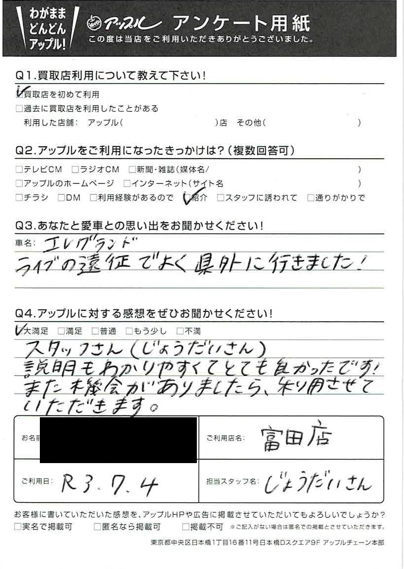 匿名様 車名:日産 エルグランド