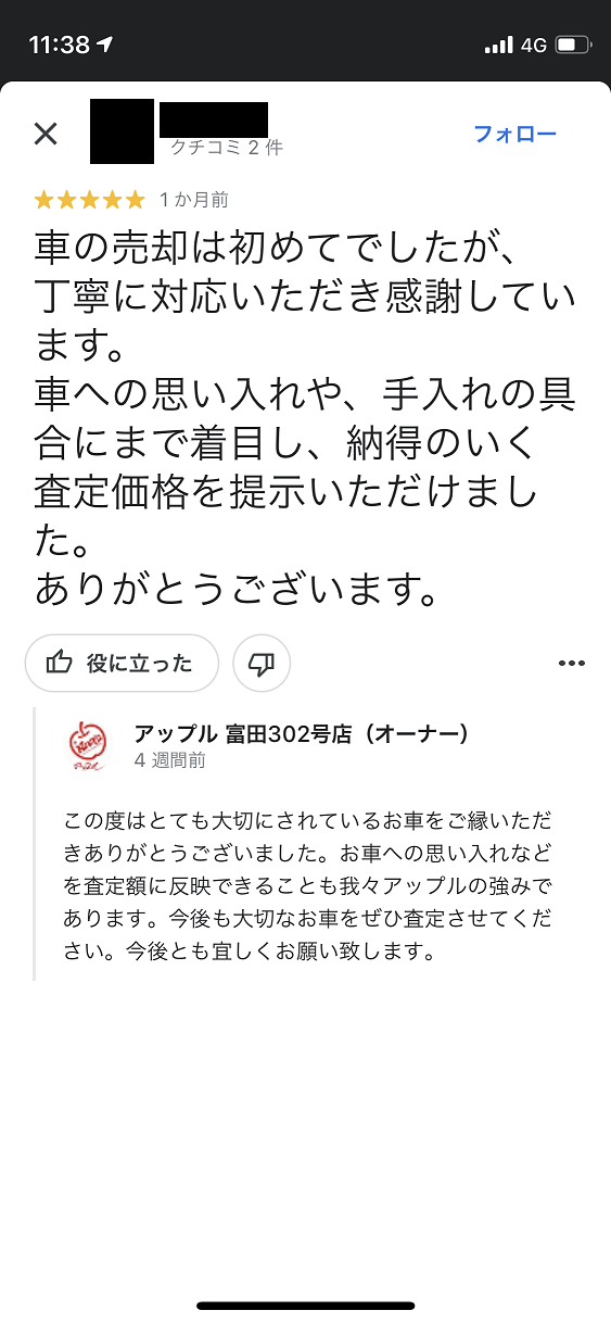 お車のご相談・ 査定だけでもOK! カンタン 入力 30秒 アップルがブランド買取始めました! お電話でも受付中! 受付時間AM10:00~PM7:00(毎週水曜日店休) 052-304-0136 お車のご相談・ 査定だけでもOK! カンタン 入力 30秒 アップルがブランド買取始めました! お電話でも受付中! 受付時間AM10:00~PM7:00(毎週水曜日店休) 052-304-0136 アップルがブランド買取始めました! お電話でも受付中! 受付時間AM10:00~PM7:00(毎週水曜日店休) 052-304-0136 店舗情報 在庫車 スタッフ紹介 ブログ お客様の声 キャンペーン 無料査定 click お客様の声 ご記入日: 2022/06/10 匿名様 車の売却は初めてでしたが、丁寧に対応いただき感謝しています。車の思い入れや、手入れ具合まで着目して、納得いく査定価格を提示頂けました。ありがとうございました。 前へ 次へ お客様の声一覧を見る