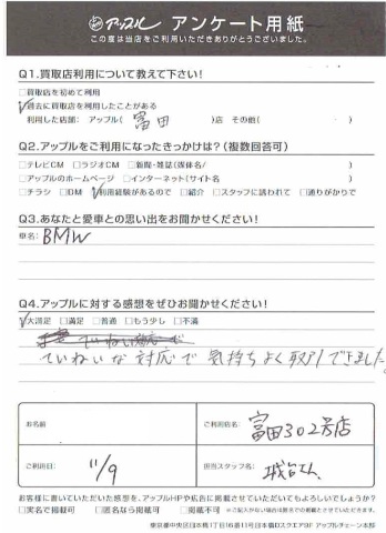 お車のご相談・ 査定だけでもOK! カンタン 入力 30秒 アップルがブランド買取始めました! お電話でも受付中! 受付時間AM10:00~PM7:00(毎週水曜日店休) 052-304-0136 お車のご相談・ 査定だけでもOK! カンタン 入力 30秒 アップルがブランド買取始めました! お電話でも受付中! 受付時間AM10:00~PM7:00(毎週水曜日店休) 052-304-0136 アップルがブランド買取始めました! お電話でも受付中! 受付時間AM10:00~PM7:00(毎週水曜日店休) 052-304-0136 店舗情報 在庫車 スタッフ紹介 ブログ お客様の声 キャンペーン 無料査定 click お客様の声 ご記入日: 2017/11/09 匿名希望BMW様 丁寧な対応で気持ちよく取引できました! 前へ 次へ お客様の声一覧を見る