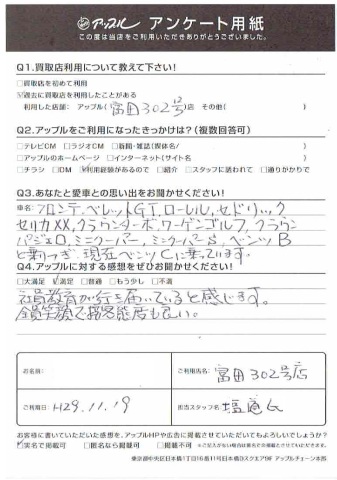 お車のご相談・ 査定だけでもOK! カンタン 入力 30秒 アップルがブランド買取始めました! お電話でも受付中! 受付時間AM10:00~PM7:00(毎週水曜日店休) 052-304-0136 お車のご相談・ 査定だけでもOK! カンタン 入力 30秒 アップルがブランド買取始めました! お電話でも受付中! 受付時間AM10:00~PM7:00(毎週水曜日店休) 052-304-0136 アップルがブランド買取始めました! お電話でも受付中! 受付時間AM10:00~PM7:00(毎週水曜日店休) 052-304-0136 店舗情報 在庫車 スタッフ紹介 ブログ お客様の声 キャンペーン 無料査定 click お客様の声 ご記入日: 2017/11/19 匿名希望ベンツBクラス様 社員教育が行き届いていると感じます。全員笑顔で接客態度も良い。 前へ 次へ お客様の声一覧を見る