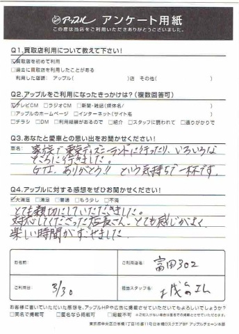 お車のご相談・ 査定だけでもOK! カンタン 入力 30秒 アップルがブランド買取始めました! お電話でも受付中! 受付時間AM10:00~PM7:00(毎週水曜日店休) 052-304-0136 お車のご相談・ 査定だけでもOK! カンタン 入力 30秒 アップルがブランド買取始めました! お電話でも受付中! 受付時間AM10:00~PM7:00(毎週水曜日店休) 052-304-0136 アップルがブランド買取始めました! お電話でも受付中! 受付時間AM10:00~PM7:00(毎週水曜日店休) 052-304-0136 店舗情報 在庫車 スタッフ紹介 ブログ お客様の声 キャンペーン 無料査定 click お客様の声 ご記入日: 2018/03/30 匿名希望ゴルフGTI様 とても親切にして頂きました。対応して下さった店長さんとても感じよく楽しい時間が過ごせました。 前へ 次へ お客様の声一覧を見る
